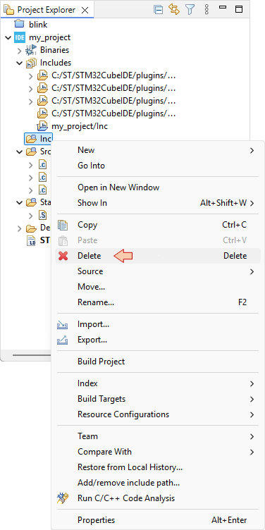 Using the contextual (right-click) menu, delete the /Inc folder.