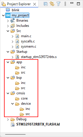 If you are working with a device other than the STM32F072RB, just adapt the previous table to your needs… All ST's Cube libraries share the same file structure and naming convention.