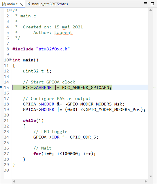 In this tutorial, let us create from scratch a minimal project that include everything we actually need to start programming STM32 devices. It is based on the initial blink demo project, but we will bring some additional headers and functions in, that makes the coding a bit more explicit.