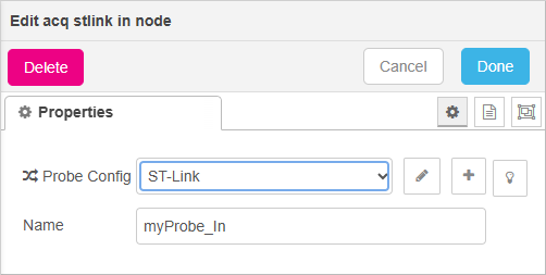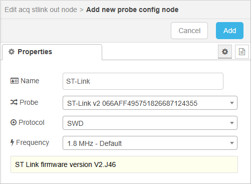 block. In the Probe Config field, select your ST-Link device.