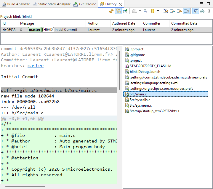 Check your commits both in STM32CubeIDE and in GitLab after the push action, especially the first ones, to make sure everything works as it should.