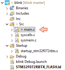 From STM32CubeIDE, using the blink3 project menu select Team →